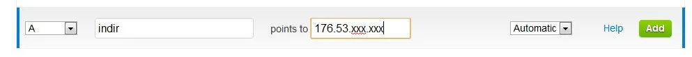 Mesala indir.teklif.me adlı bir subdomain açacaksınız.Bunun için öncelikle cloudflare panelizden dns ayarlarına girin.Orada name kısmına sadece subdomain adınızı girin sonuna uzantı eklemeyin.Daha sonra value kısmına hostunuzun ip adresini yazın.TTL Kısmını otomatik yapın ve kayıt şeklini A olarak seçip kaydedin.Biraz bekledikten sonra subdomainiz hazırdır.