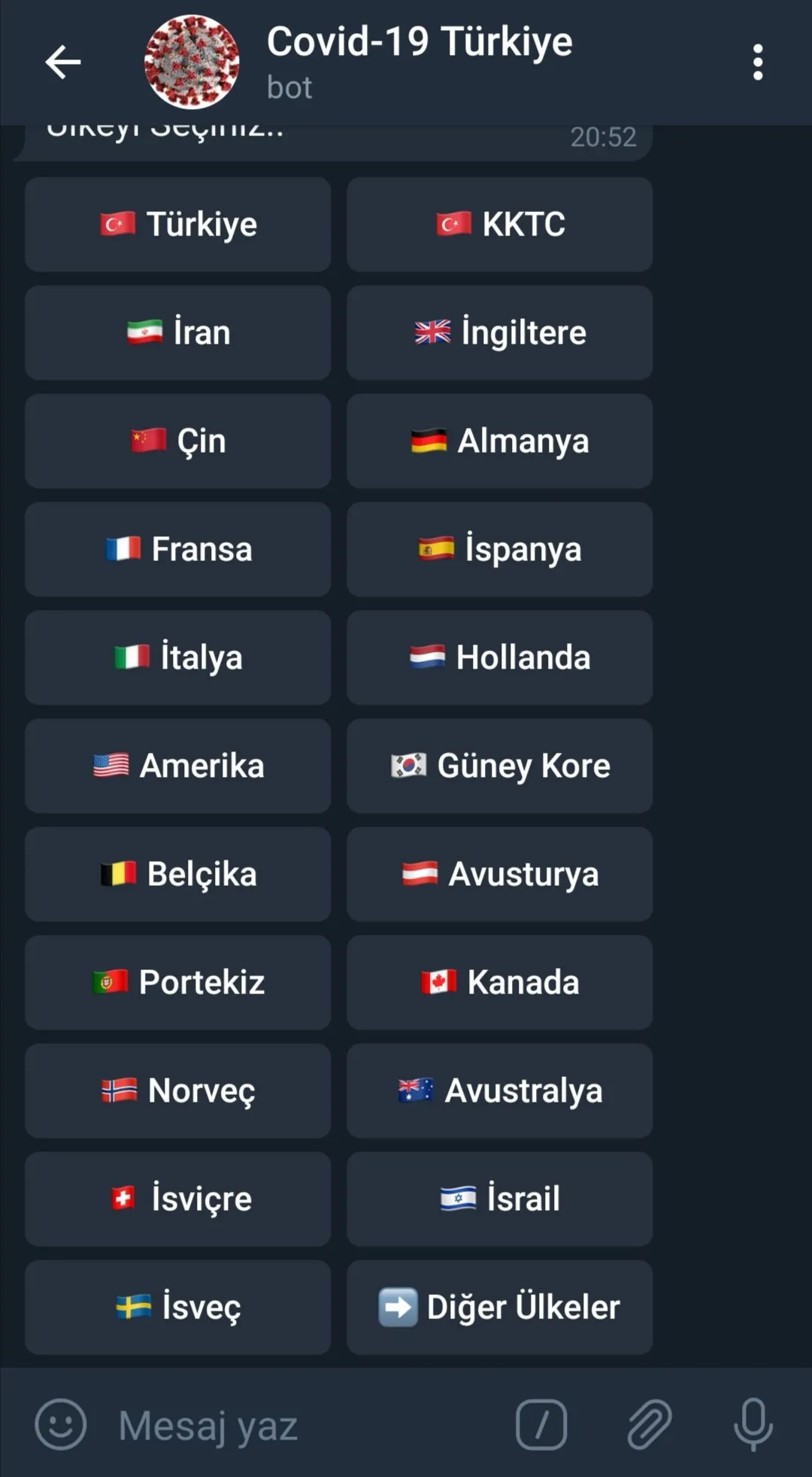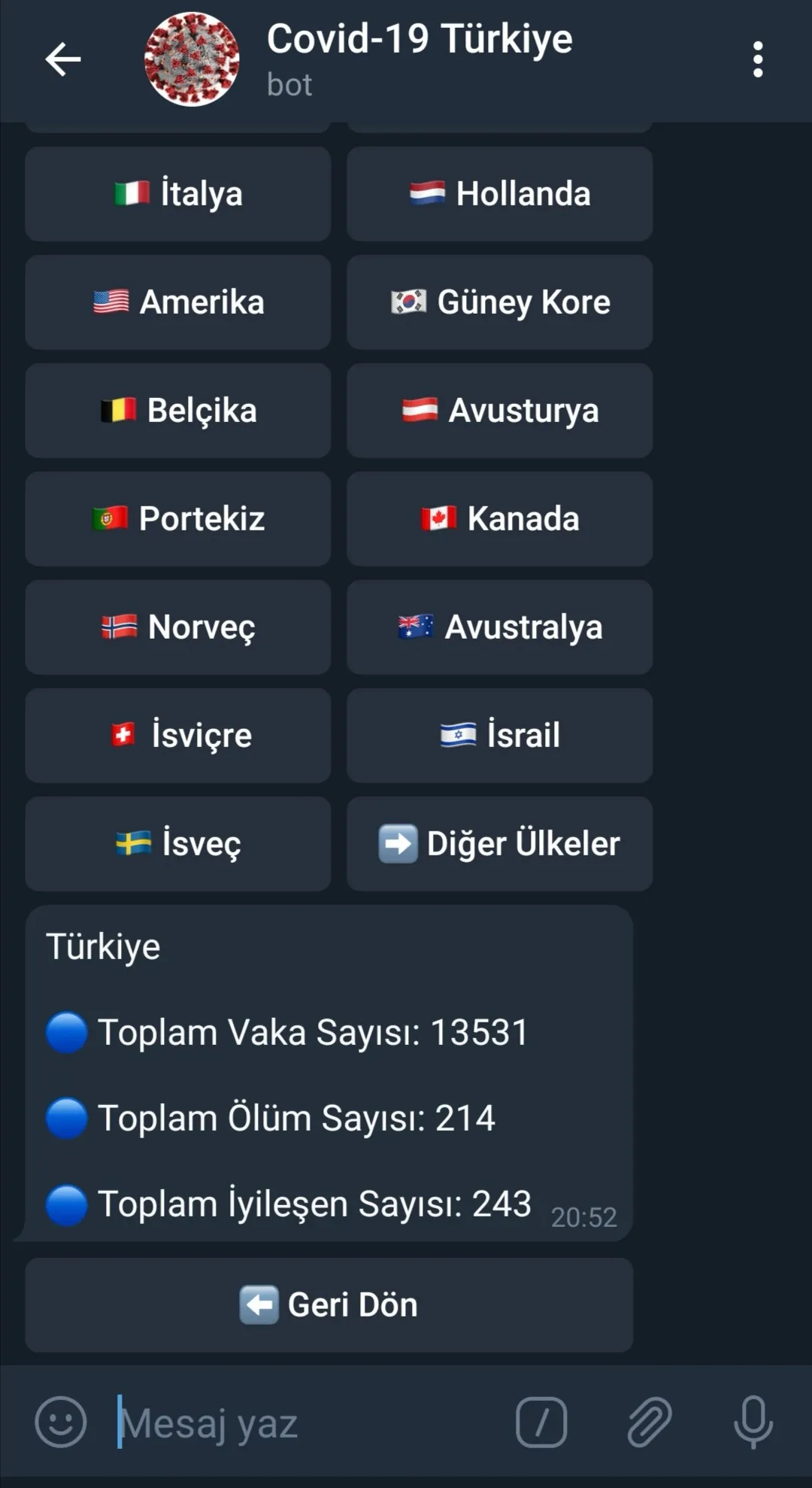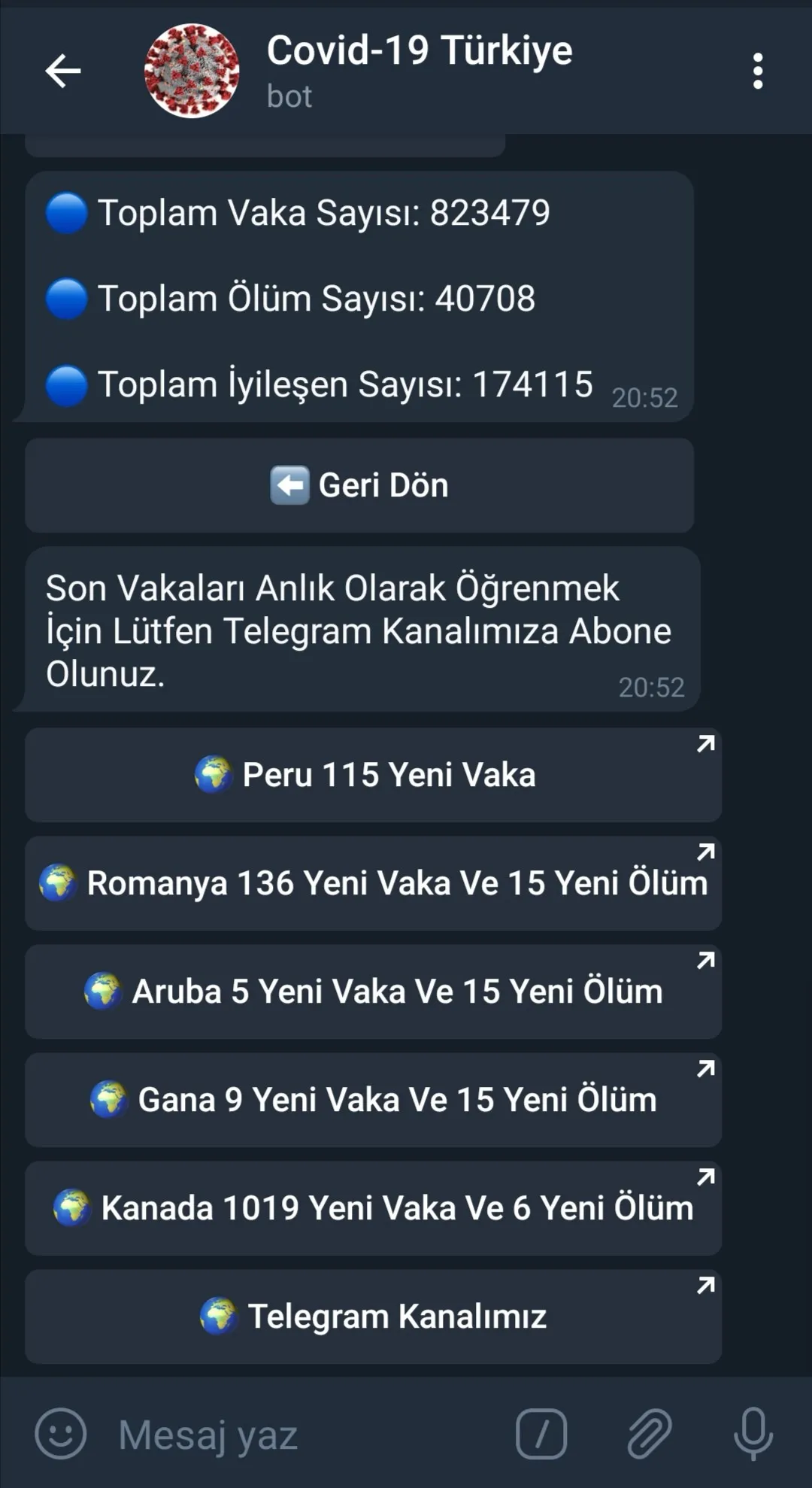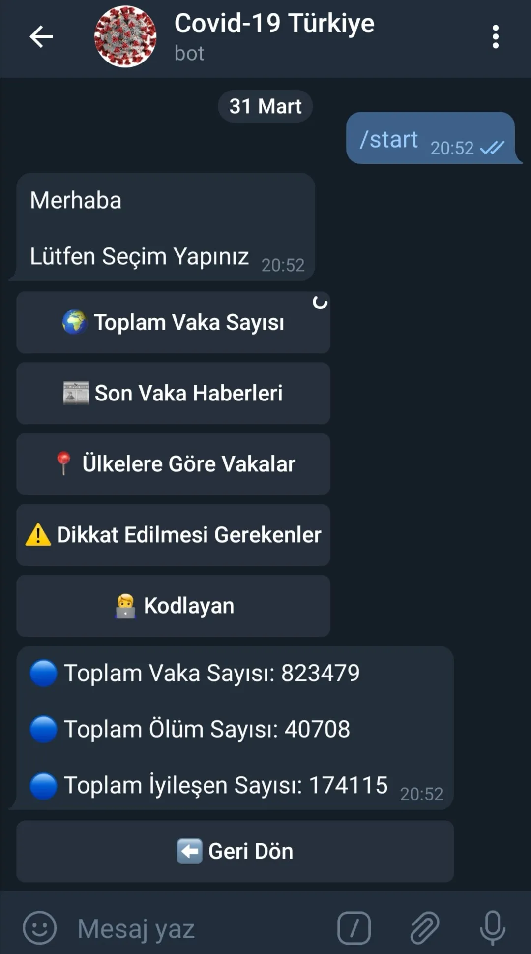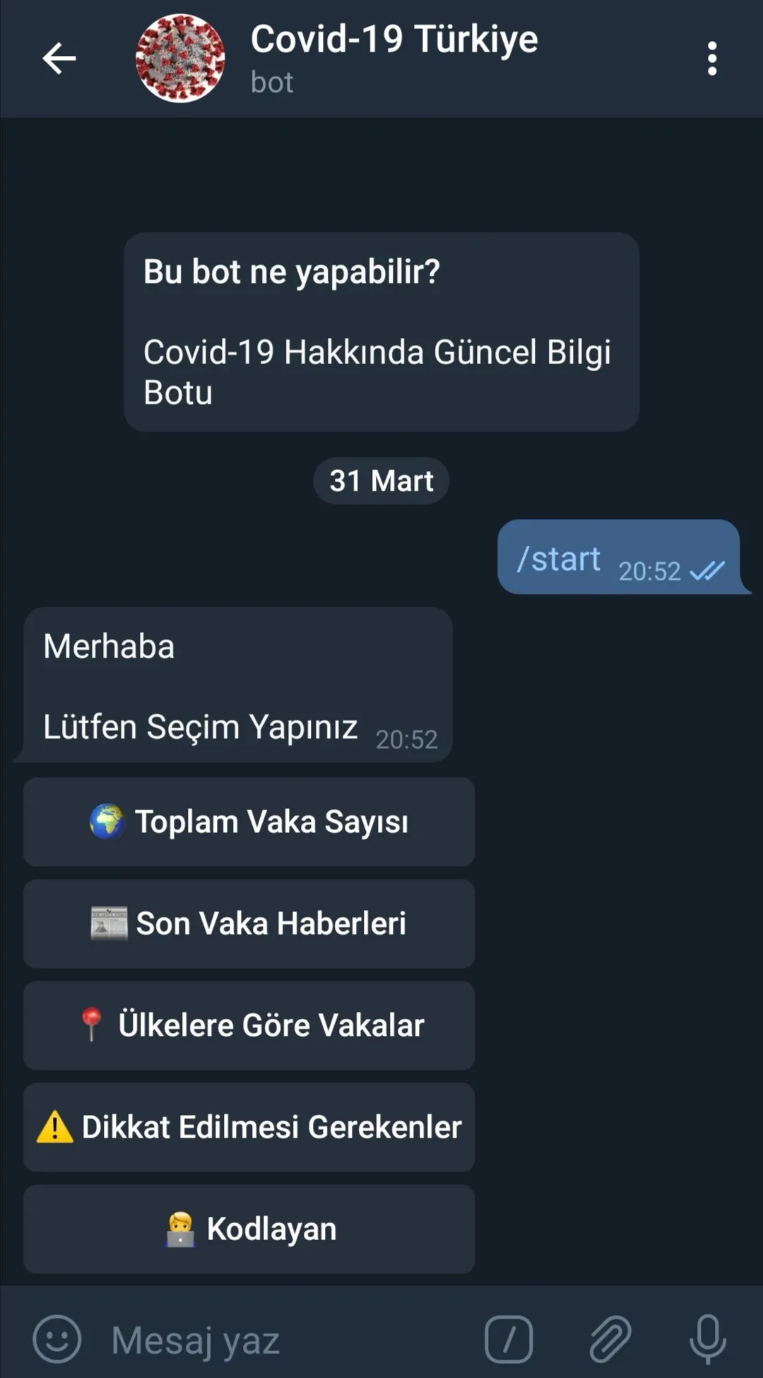 Covid-19 Telegram Botu: https://t.me/covid19tr_bot